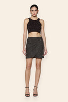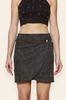 Fierce yet effortlessly stylish, this studded denim wrap skirt is designed to make a bold statement with every step. The wrap silhouette flatters the form, while the stud embellishments add a touch of rebellious charm. Perfect for daytime outings, concerts, or evening get-togethers, this skirt combines confidence and versatility, making it a standout piece for those who love to embrace edgy sophistication.