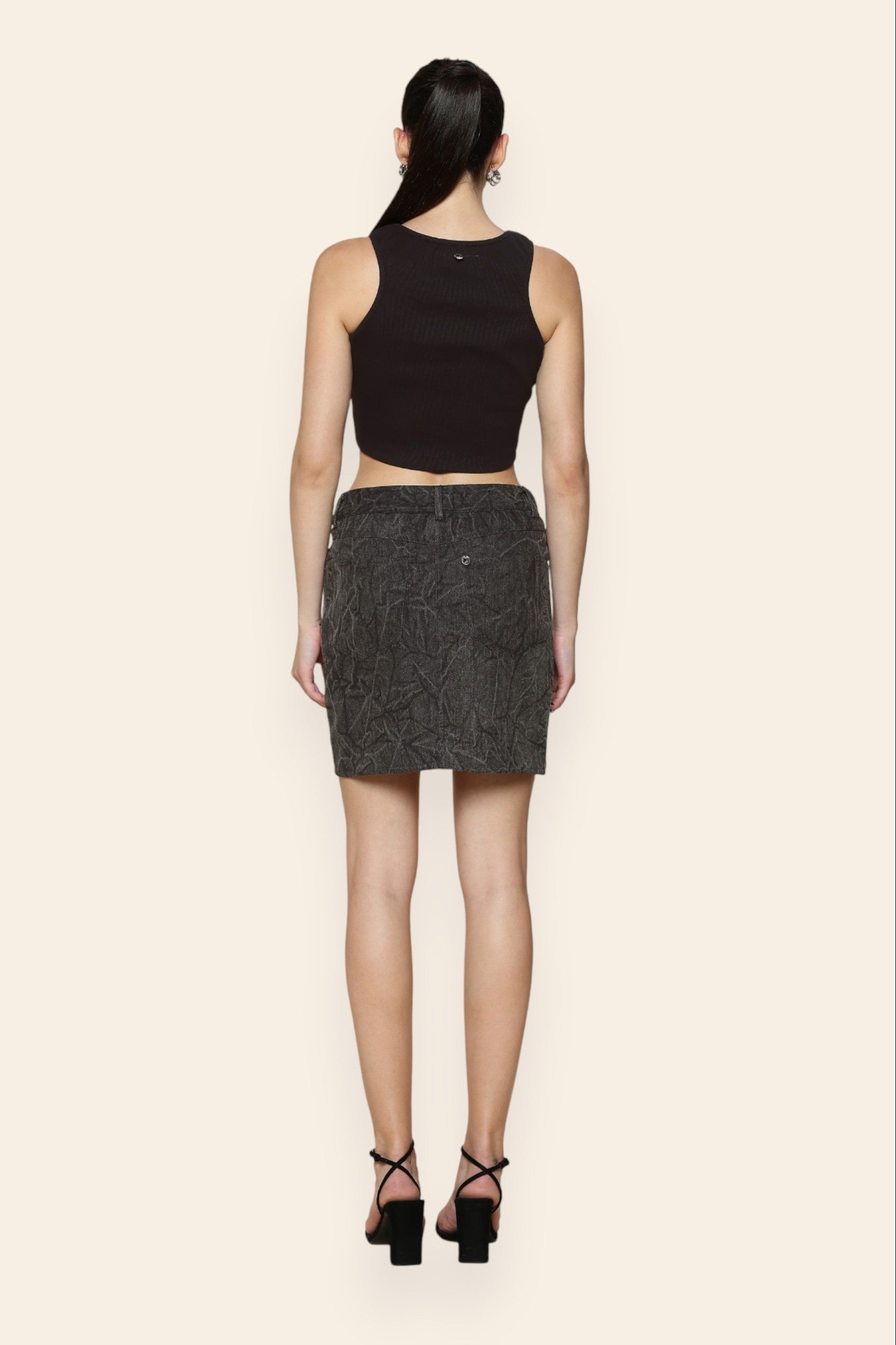 Washed denim studded skirt